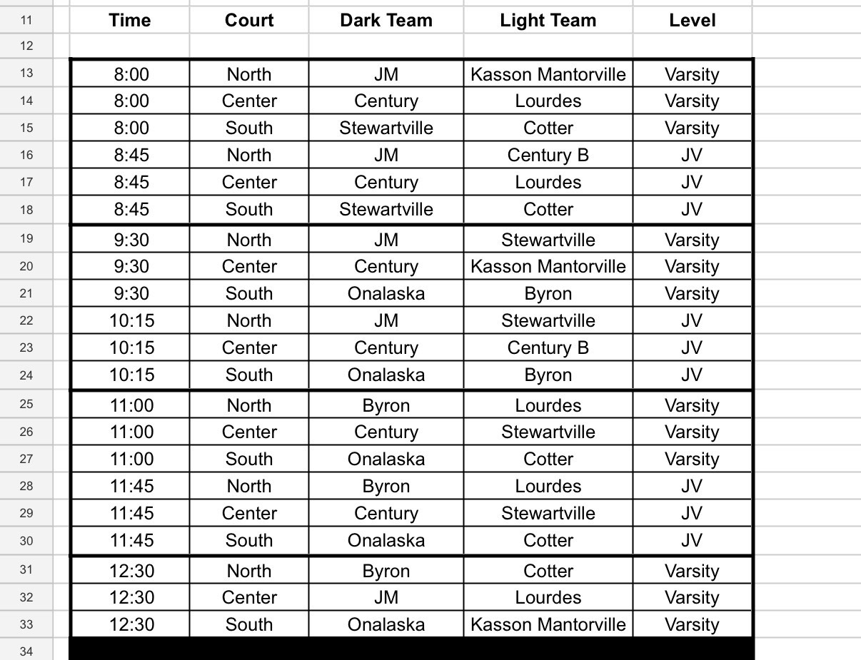 | 5:45pm | vs. Owatonna MS @ Kasson-Mantorville High School | |